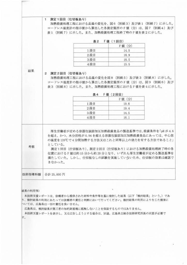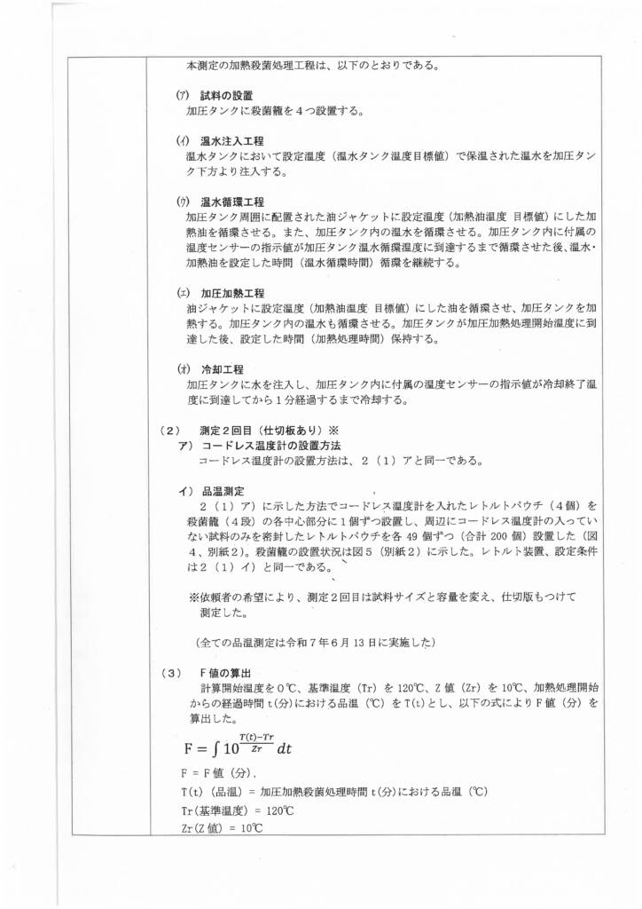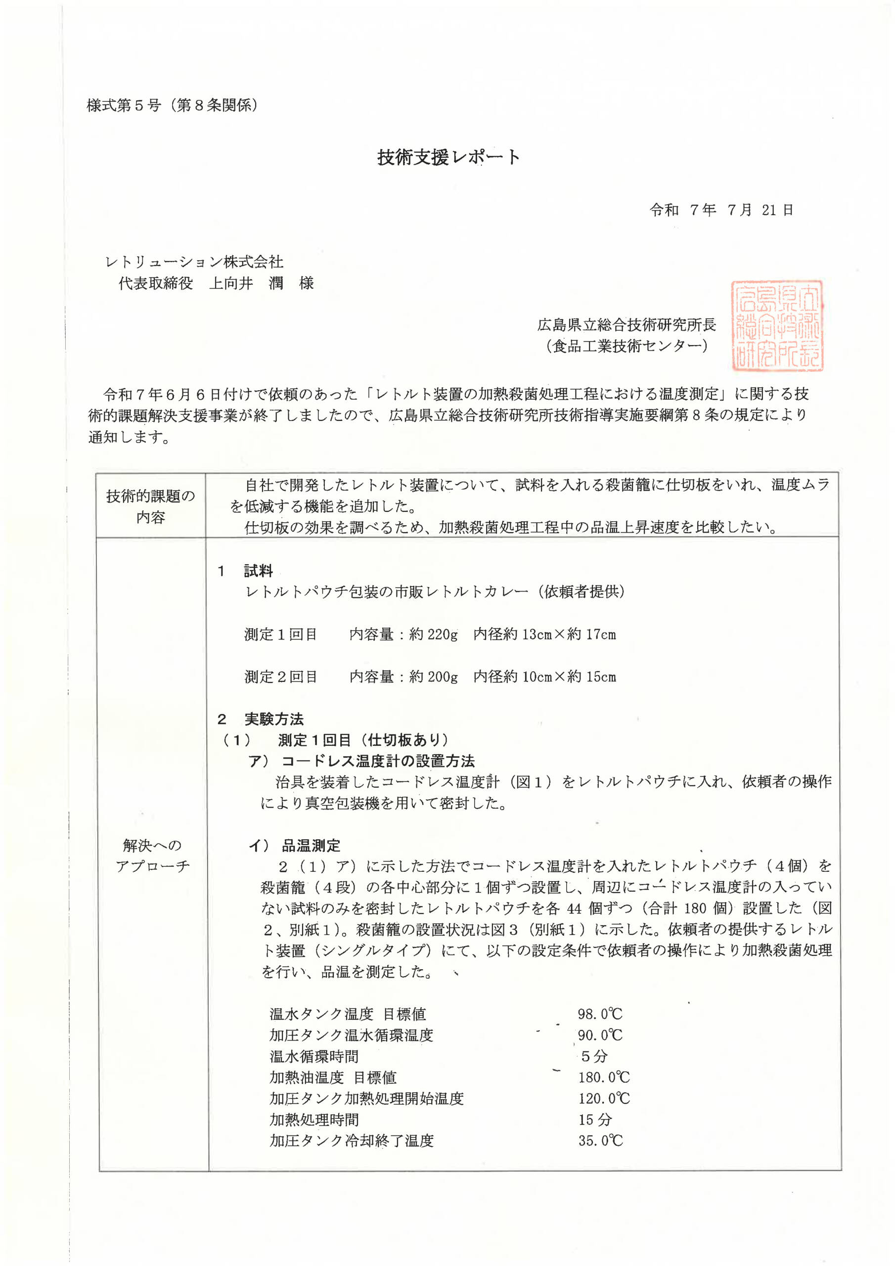 食品工業技術センターにレトリューション装置の温度測定を実施していただきましたので、測定データを公表いたします。